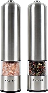 Salter Electric ソルトアンドペッパーミルグラインダーセット – つや消しステンレススチール仕上げ セラミックメカニズム ヒマラヤ/ロックソルト、ペッパー、ドライハーブ、スパイスに最適 シェーカーポットが散らない こぼれない