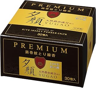 紀陽除虫菊 夕顔プレミアム 天然蚊とり線香 ( 30巻 / 線香立て具2個付 ) 国産 天然成分 ( 防除用医薬部外品 ) 屋外 殺虫 箱