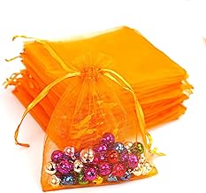 Lautechco 100個 オーガンザ ギフトバッグ 小型 メッシュバッグ 巾着ギフトバッグ クリスマス 巾着型オーガンジーギフトバッグ 3.5x4.5' inches オレンジ