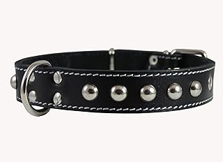 Black Genuine 1 Wide Thick Leather Studded Dog Collar. Fits 14-17 Neck, Medium Breeds. by Dogs My Love