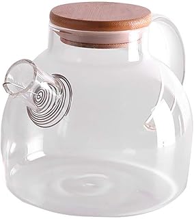 SkyKey Glass Pitcher with Bamboo Wood Lid Water Jug for Hot/Cold Water Ice Tea,1 Liter