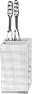 Creative Scents バスルームアクセサリーセット – ホワイトバスルームセットアクセサリー シルバーベース付き – 歯ブラシホルダーセット ソープディスペンサー、歯ブラシホルダー、タンブラー、ソープディッシュ(Estella)