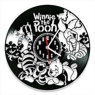 3D くまのプーさん ビニールレコード 壁掛け時計 デジタル時計 レトロな壁時計 サイレント ウォールクロック 手作り ウォールクロック 現代およびクリエイティブホーム壁の装飾