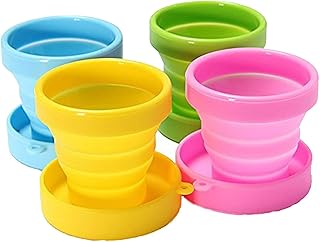 Ueasy 折り畳み コップ 携帯コップ 蓋付き 170ML 大容量4色セット (グリーン イエロー ブルー ピンク)アウトドアや旅行に最適 [並行輸入品]