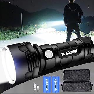 懐中電灯 ledライト 超強力 軍用ライト 最強 かいちゅうでんとう 25000ルーメン 4xP70 超高輝度 5000mAh大容量 usb 充電式 ハンディライト IPX8防水 明るいフラッシュライト セット 高品質パワーバッテリーx2、収納ボックスx1、USBケーブルx1、日本語マニュアル付き (XINMAN-4xP70)